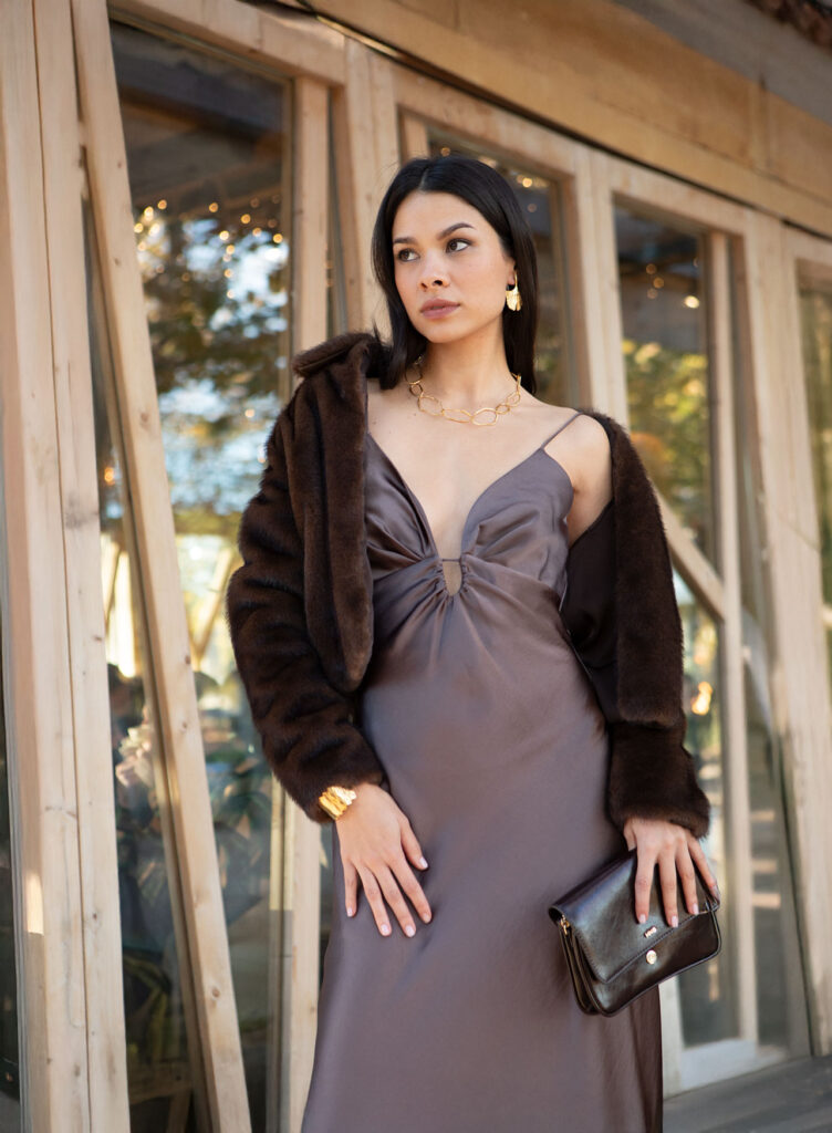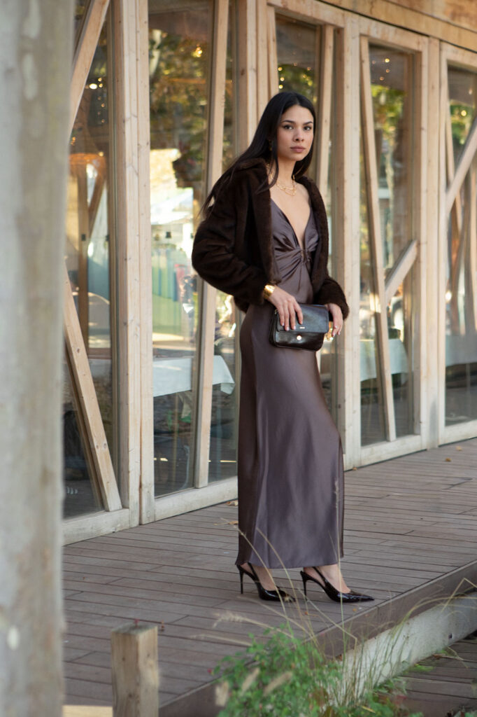 Ahora si, diciembre ha llegado y la cuenta atrás para acabar el año ha comenzado. ¡Que nervios! Mientras esperamos al 2026, seguimos eligiendo bonitos looks para pasar estos días cómod@s, bonit@s y con mucho estilo. Hoy hemos elegido un conjunto de Mango combinado con joyas de El Palacio de la Plata, una combinación muy TOP en nuestra opinión, perfecta para una noche especial como Nochevieja. Un vestido de satén largo, un buen tacón, abrigo de pelo y complementos en dorado, ¿quién necesita más? 😍 Os dejamos los detalles de todas las prendas más abajo y ya sabéis, seguimos hablando de moda 😉