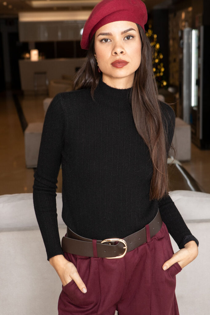 Último día del año y último look que os mostramos en este 2025. Este año hemos celebrado los 10 años del inicio del Blog de moda, parece que fue ayer cuando comenzamos en 2015 a mostraros cómo combinar prendas, las tendencias de cada año, la última moda de nuestras tiendas y muchos looks para brillar e irradiar estilo. Hoy cerramos este 2025 como no podía ser de otra forma, con un bonito estilismo color burdeos compuesto por básicos bien calentitos y prendas TOP como las bermudas. Esta prenda es un pantalón corto que llega por la rodilla aproximadamente y está muy de moda desde el verano pasado; hoy os traemos una versión de invierno con tela de ante y cinturón incorporado que queda de lujo. Lo demás ya lo veis, un abrigo largo, unas buenas botas, una boina y guantes muy calentitos y un bolso de Valentino que nos ha enamorado. ¡Nos gusta todo! Sin duda, el mejor look para dar fin al 2025 y comenzar el año nuevo con muchas ideas. Os dejamos los créditos más abajo y esperamos seguir hablando de moda este nuevo año 😉