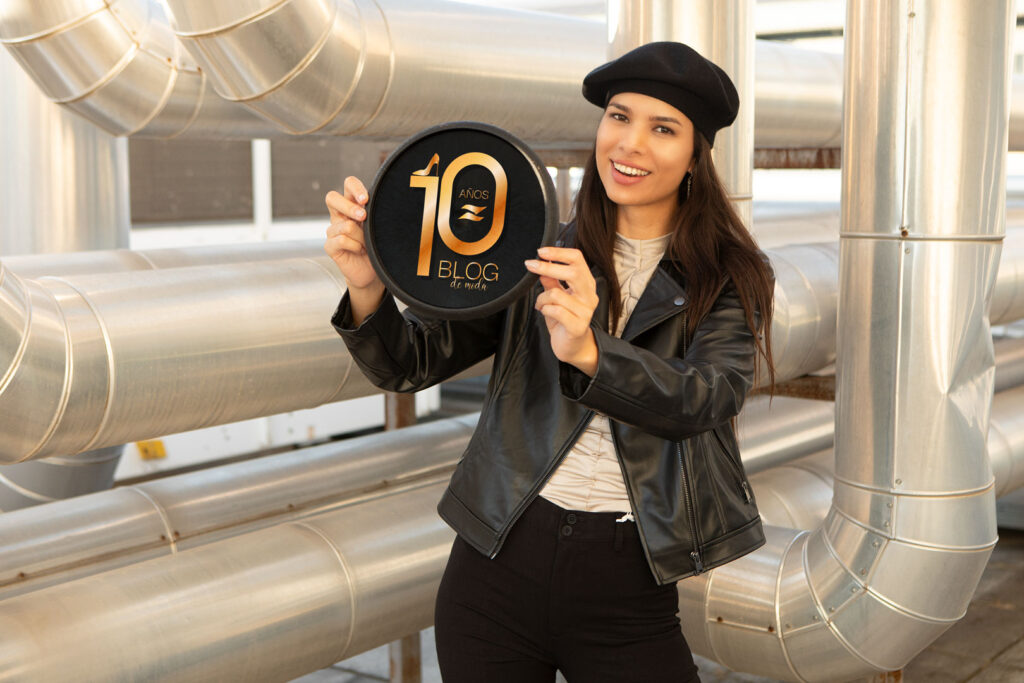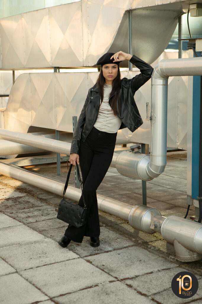 Entramos en el penúltimo mes del año y en Plaza de la Estación seguimos celebrando los 10 años del Blog de Moda, ¿cómo? Pues como lo llevamos haciendo todo 2025, recreando looks de hace justo una década y versionándolos con las tendencias actuales. Este mes nos hemos decantado por el color negro y un look elegante al que darle mucha vida. Comienzan las cenas de empresa y podemos utilizarlo para ir cómodas o bien puede ser tu conjunto de confianza, el que nunca falla. Hemos cambiado la americana negra por una chaqueta de cuero infalible, el top gris por uno brillante, dorado, que nos de mucha luz al rostro; la falda de tul por unos pantalones rectos que alargan la pierna y terminan en unos botines, que antes eran sandalias. Con los complementos hemos hecho lo mismo, pasamos de las gafas de sol a la boina, que apetece más y del bolso enorme, a otro más coqueto y mediano de tamaño. Además, hemos completado este lookazo con joyas de El Palacio de la Plata que nunca nos falla y le da ese toque «glam» que tanto nos gusta. Os dejamos los créditos más abajo y seguimos, ¡haciendo moda! 😉