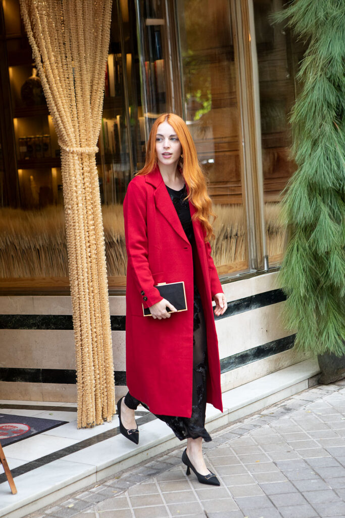 El rojo y el negro son colores festivos y elegantes, por lo tanto, perfectos para combinarlos en los looks navideños que tenemos por delante. Por lo tanto, no teníamos otro remedio que mostraros una combinación con estos tonos… ¡y qué combinación! Esta chaqueta roja puede ser un básico en vuestro armario con el que dar un toque a un conjunto completo negro, a un conjunto de vaqueros y jersey en tonos neutros o en cambio, puede ser el puntazo a un look colorido para los que no tienen miedo al éxito ni a vestir con muchos colores. Volviendo al vestido, no es una prenda para utilizar todos los días pero si para usar en ocasiones especiales como Nochebuena, Nochevieja, cenas de Navidad, citas importantes… es un vestido digno de evento con transparencias sutiles, sexy y que sienta muy bien gracias a su estampado y el largo de la tela. ¡Es tan bonito y le queda tan bien a nuestra modelo Sara! Os dejamos los detalles más abajo y ya sabéis, lo tenemos en nuestro centro comercial 😉