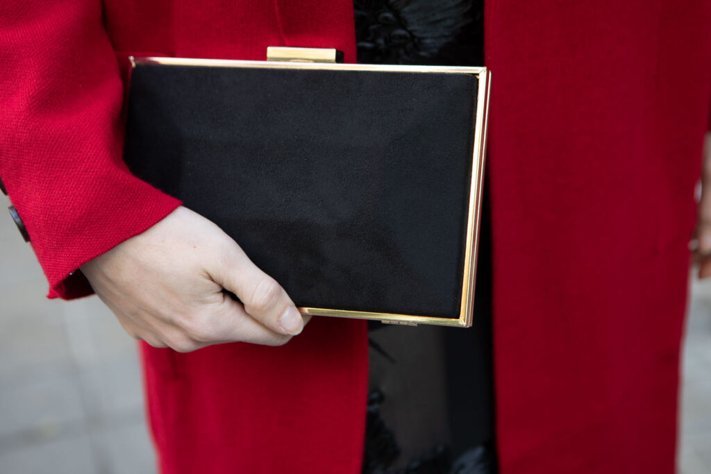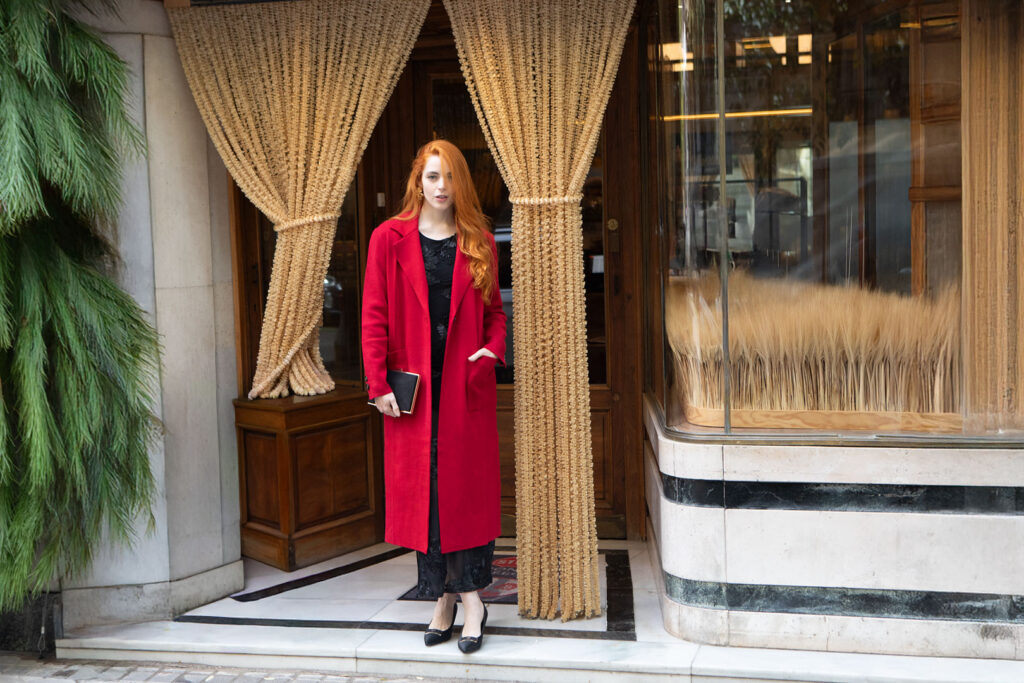 Transparencias y un abrigo rojo: una opción para brillar en tu evento navideño